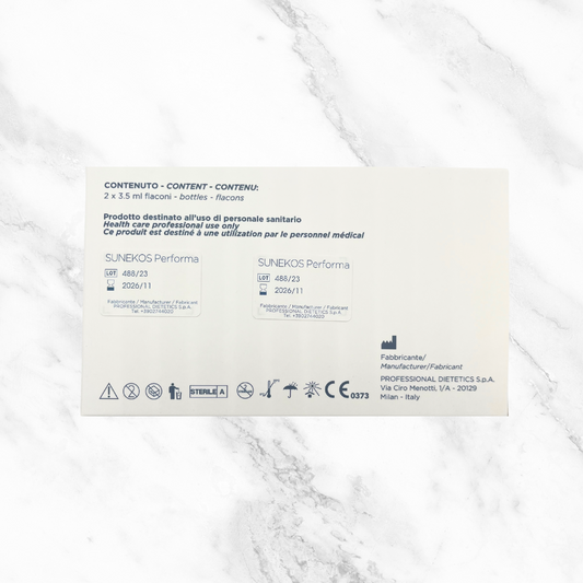SHOP HERESunekos Performa represents the latest innovation from Sunekos Laboratories, formulated with low molecular weight hyaluronic acid and the patented HY6AA amino acid cluster in a ready-to-use premix. This advanced composition enhances the regeneration of the extracellular matrix (ECM), stimulating the production of collagen (including key anchoring types IV and VII) and elastin. The result is more complete and effective skin repair, improving elasticity, firmness, and overall dermal health. Performa is particularly suited to clients seeking a scientifically advanced solution for comprehensive rejuvenation.