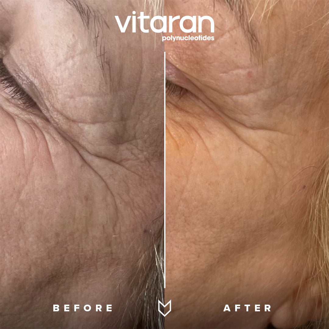Unlike traditional injectables, Vitaran I works on a cellular level to repair and restore the skin’s natural barrier. Its highly purified salmon trout DNA acts as a bio-stimulator, promoting fibroblast activation and tissue regeneration. This process not only improves skin quality but also provides long-lasting anti-ageing benefits, helping to combat free radical damage and maintain skin vitality over time.
